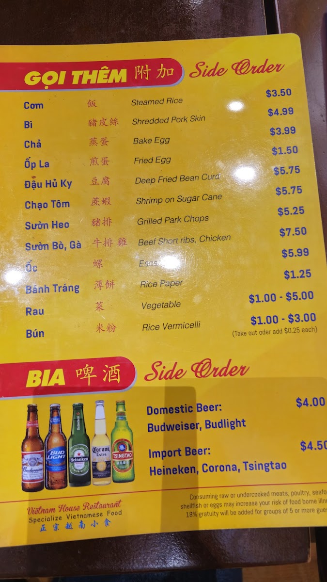 The atmosphere at Vietnam House is reflected in its food—welcoming and uncomplicated, designed for those moments when you want a meal that feels both familiar and thoughtfully prepared. This makes it an inviting spot for a casual lunch, an easy dinner, or whenever you crave the warmth of traditional Vietnamese cuisine.