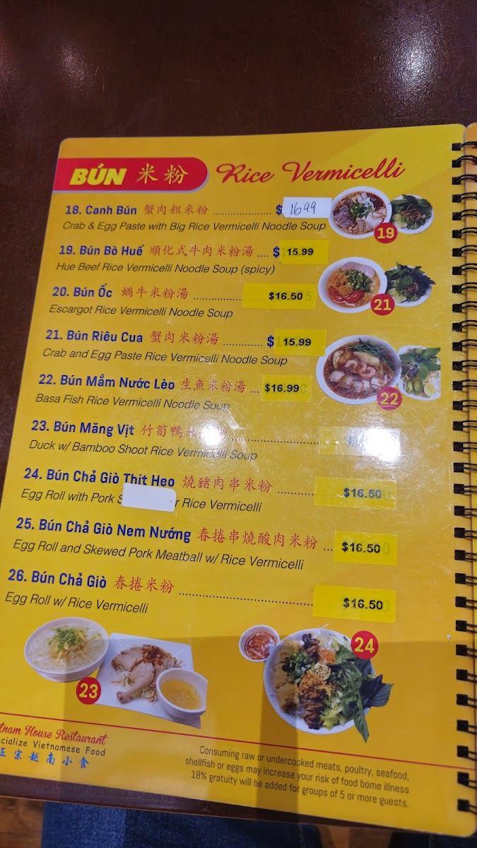 Vietnam House offers a menu centered on authentic Vietnamese flavors presented in a straightforward, casual dining style. The selection is built around comforting noodle soups like pho and hu tieu, alongside vibrant rice vermicelli bowls that invite a relaxed, satisfying meal any time of day.